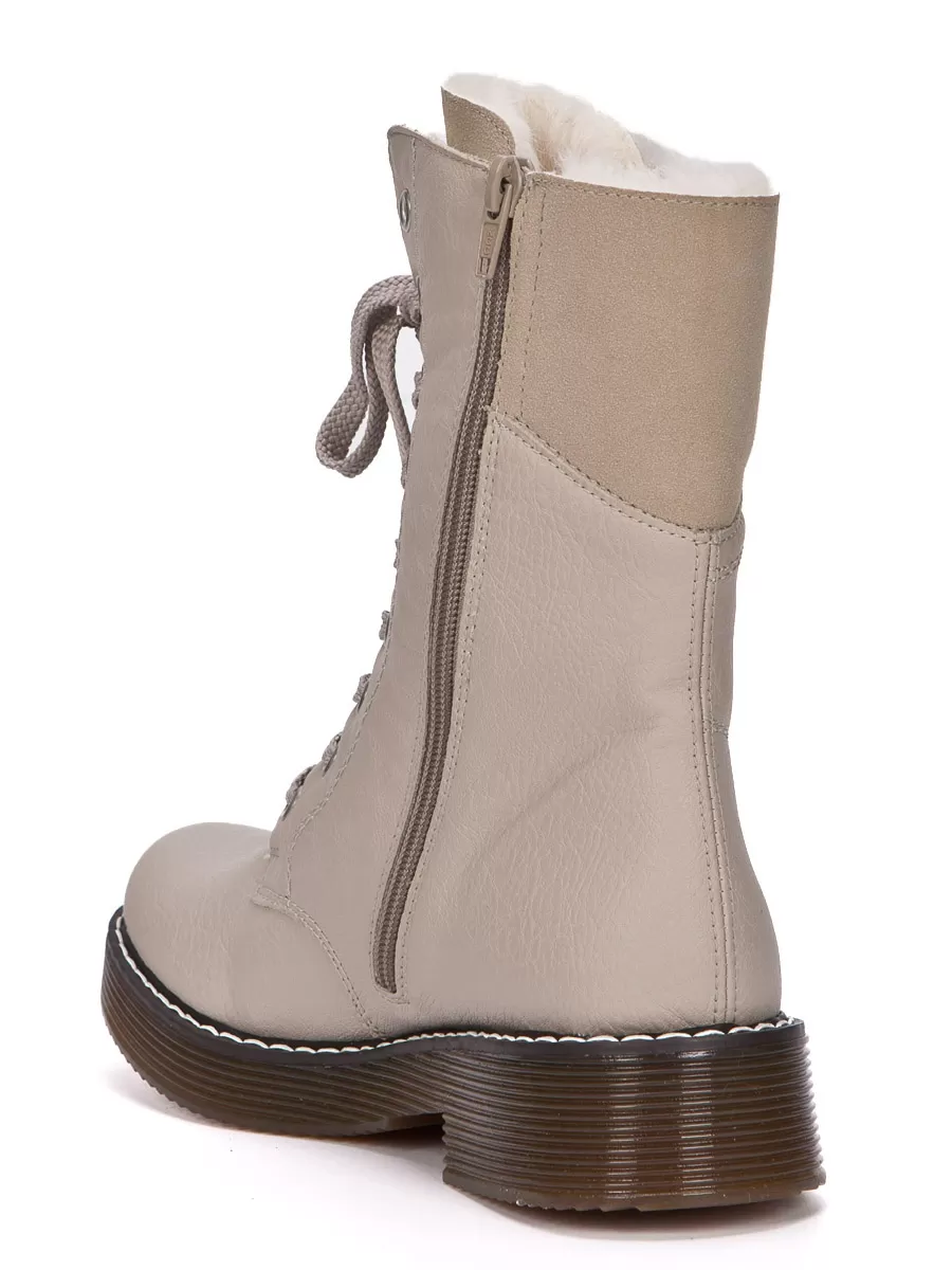 Зимние женские ботинки - это стиль и удобство в одном флаконе. Изготовленные из качественной искусственной кожи, они прекрасно сохраняют форму и обеспечивают комфорт при ходьбе. Подкладка из натуральной шерсти прекрасно согревает ноги даже в самые сильные морозы. Универсальный бежевый цвет делает эти ботинки подходящими к любой одежде и любому образу. Идеальное решение для зимнего сезона!