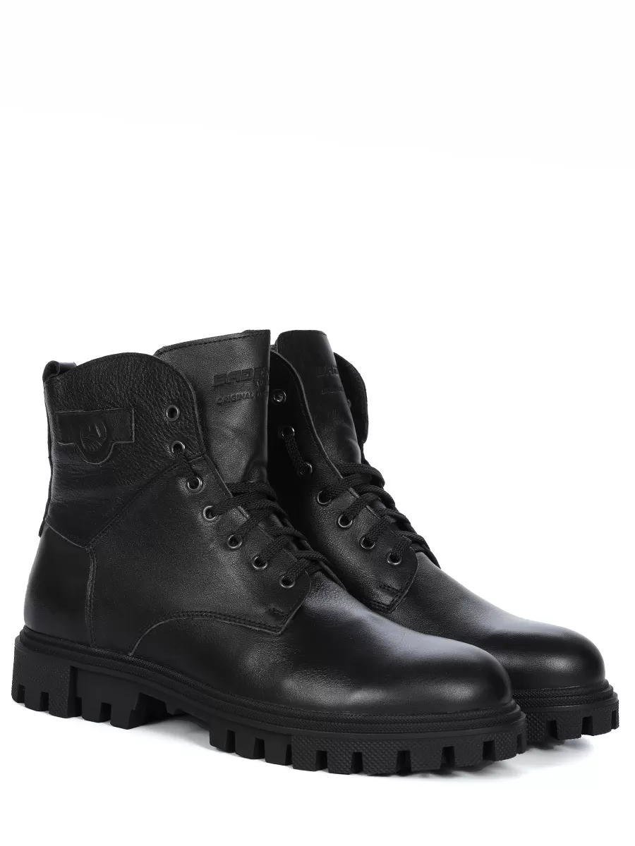 Мужские черные ботинки выполнены из натуральной кожи. Внутри - тёплая подкладка из натуральной шерсти для защиты от холода. На подошве есть глубокий протектор для надёжного сцепления с любой поверхностью и предотвращения скольжения.