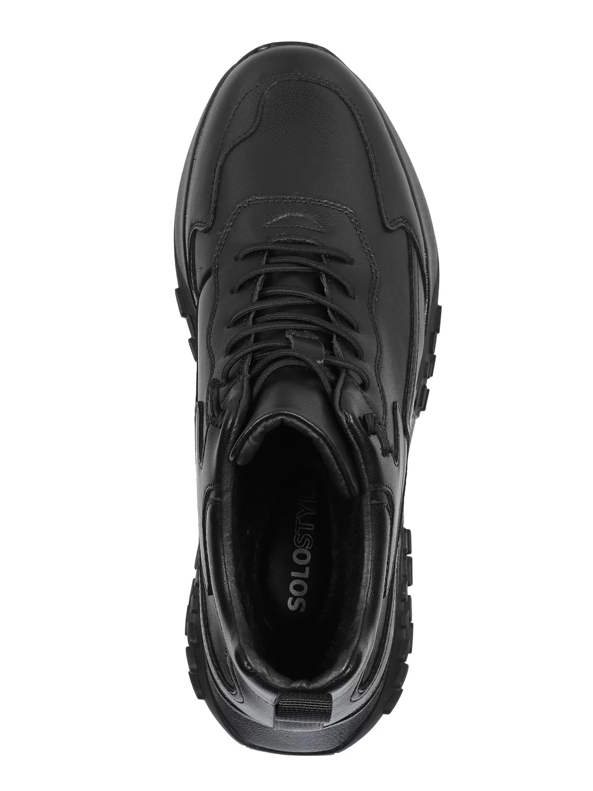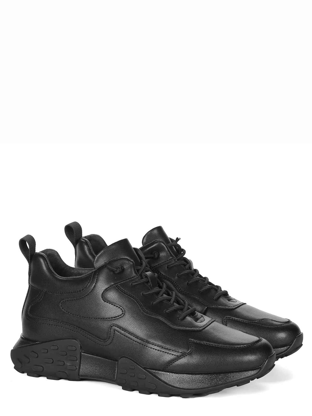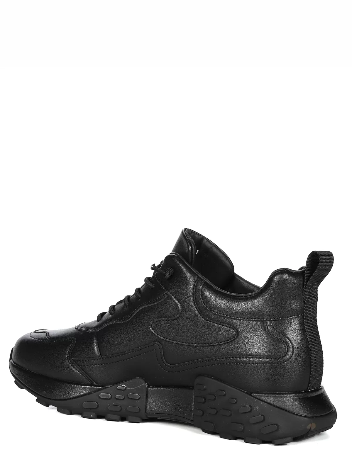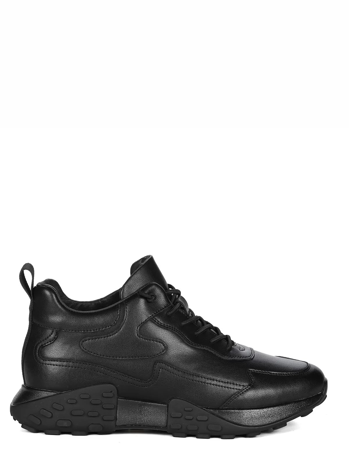 Мужские черные ботинки выполнены из натуральной кожи. Внутри - тёплая подкладка из натуральной шерсти для защиты от холода. На подошве есть глубокий протектор для надёжного сцепления с любой поверхностью и предотвращения скольжения.