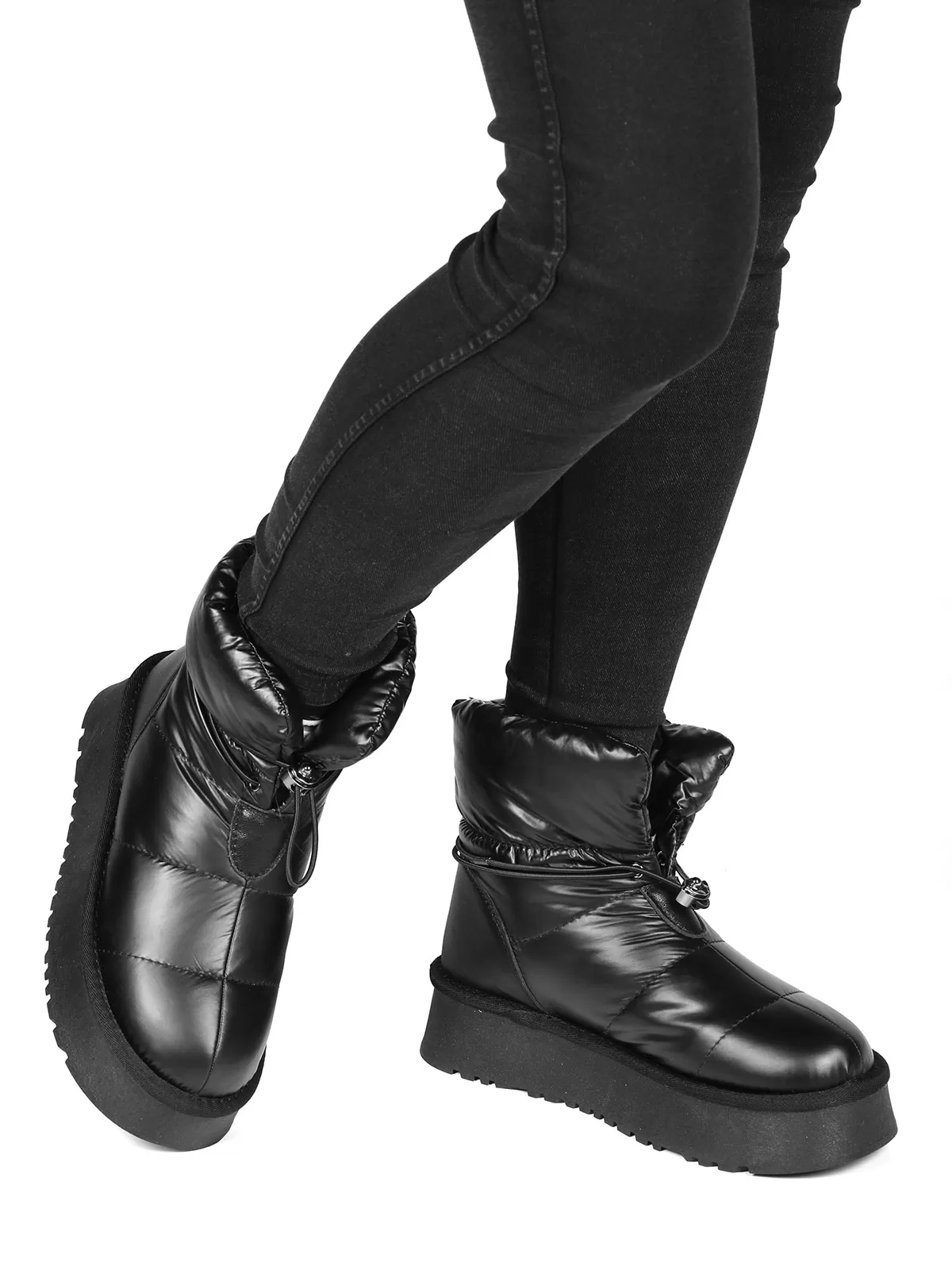 Дутики женские черные с внутренней подкладкой из шерсти - это идеальный выбор для холодных зимних дней. Подошва из прочного материала обеспечивает хорошее сцепление с поверхностью и устойчивость на льду. Верх дутиков выполнен из водонепроницаемого материала, который защитит ноги от влаги и холода. Подкладка из шерсти прекрасно сохраняет тепло и обеспечивает комфорт. Застежка-молния позволяет легко и быстро надевать и снимать дутики. В целом, это отличный выбор для повседневной носки зимой.