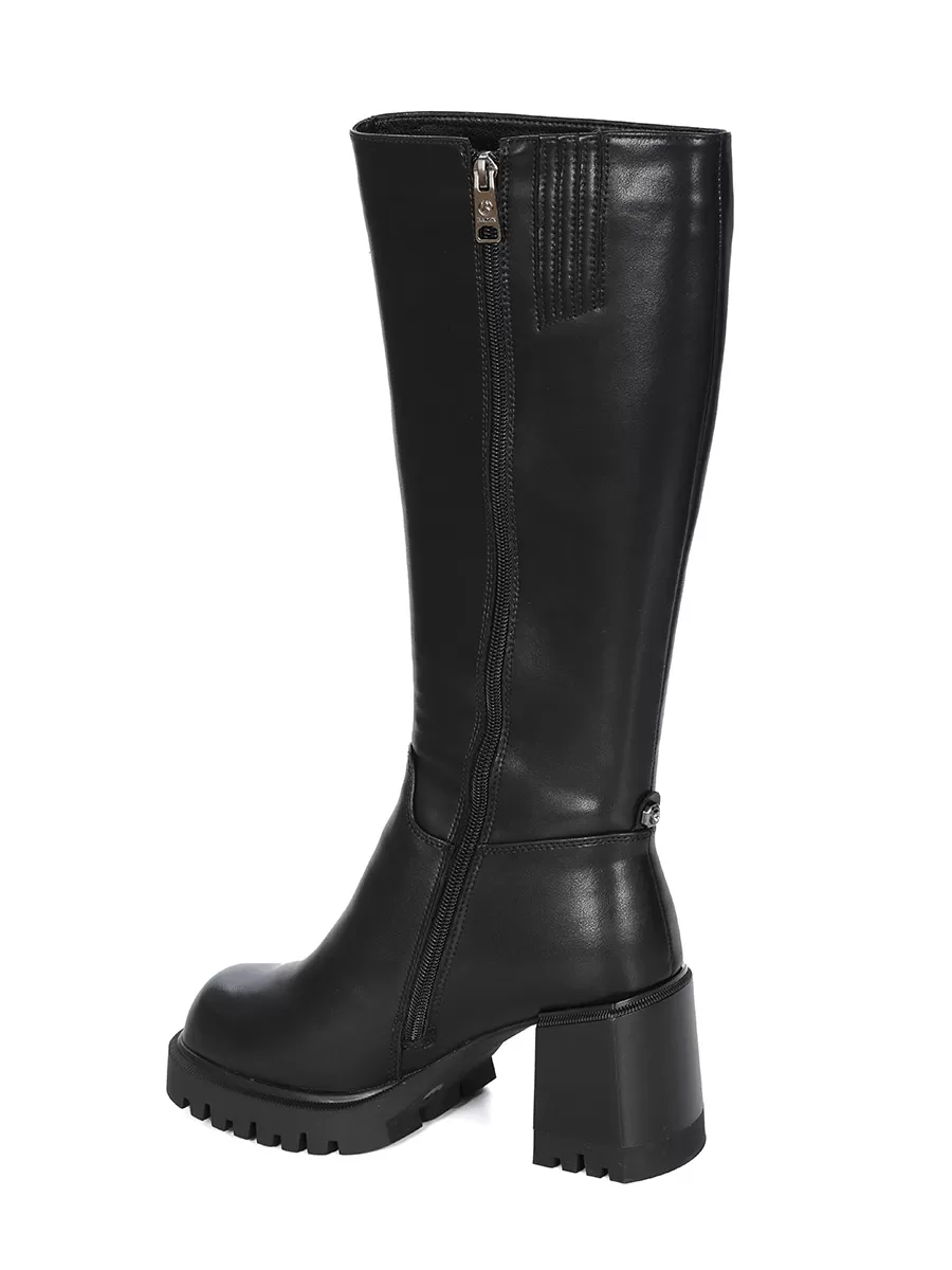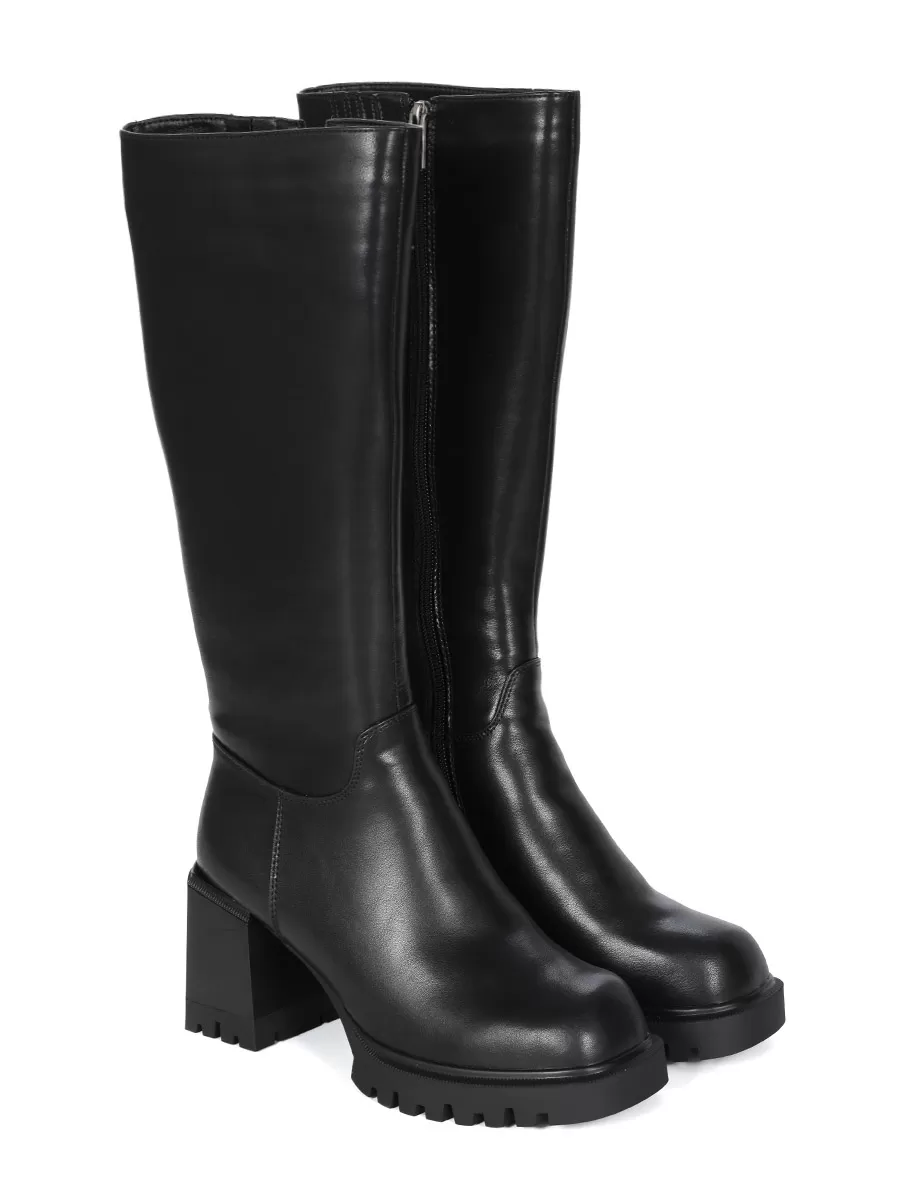 Сапоги имеют устойчивый каблук средней высоты и удобную молнию сбоку для легкого надевания и снятия. Носок закругленный, что придает модели женственности и элегантности.