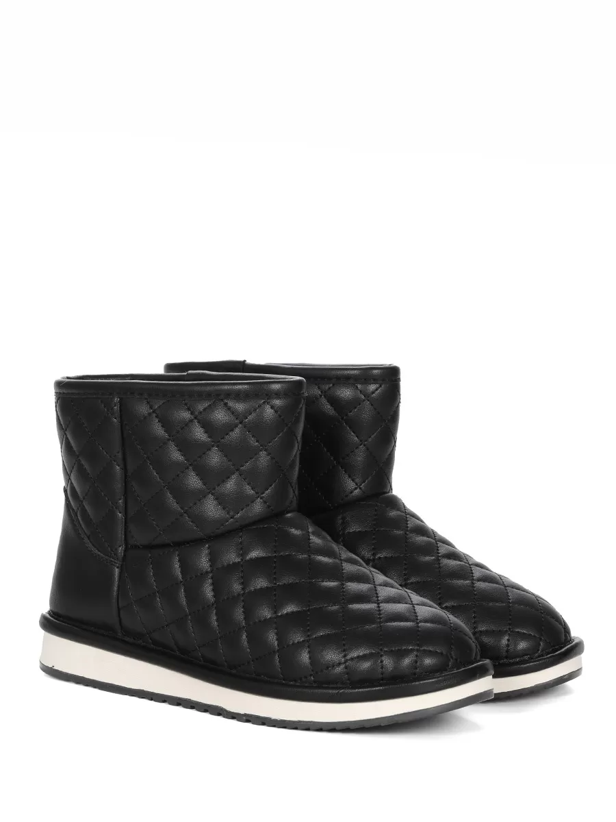 Угги женские черные с внутренней подкладкой из шерсти - это идеальный выбор для холодных зимних дней. Подошва из прочного материала обеспечивает хорошее сцепление с поверхностью и устойчивость на льду. Верх дутиков выполнен из натуральной кожи, которая защитит ноги от влаги и холода. Подкладка из шерсти прекрасно сохраняет тепло и обеспечивает комфорт. В целом, это отличный выбор для повседневной носки зимой.