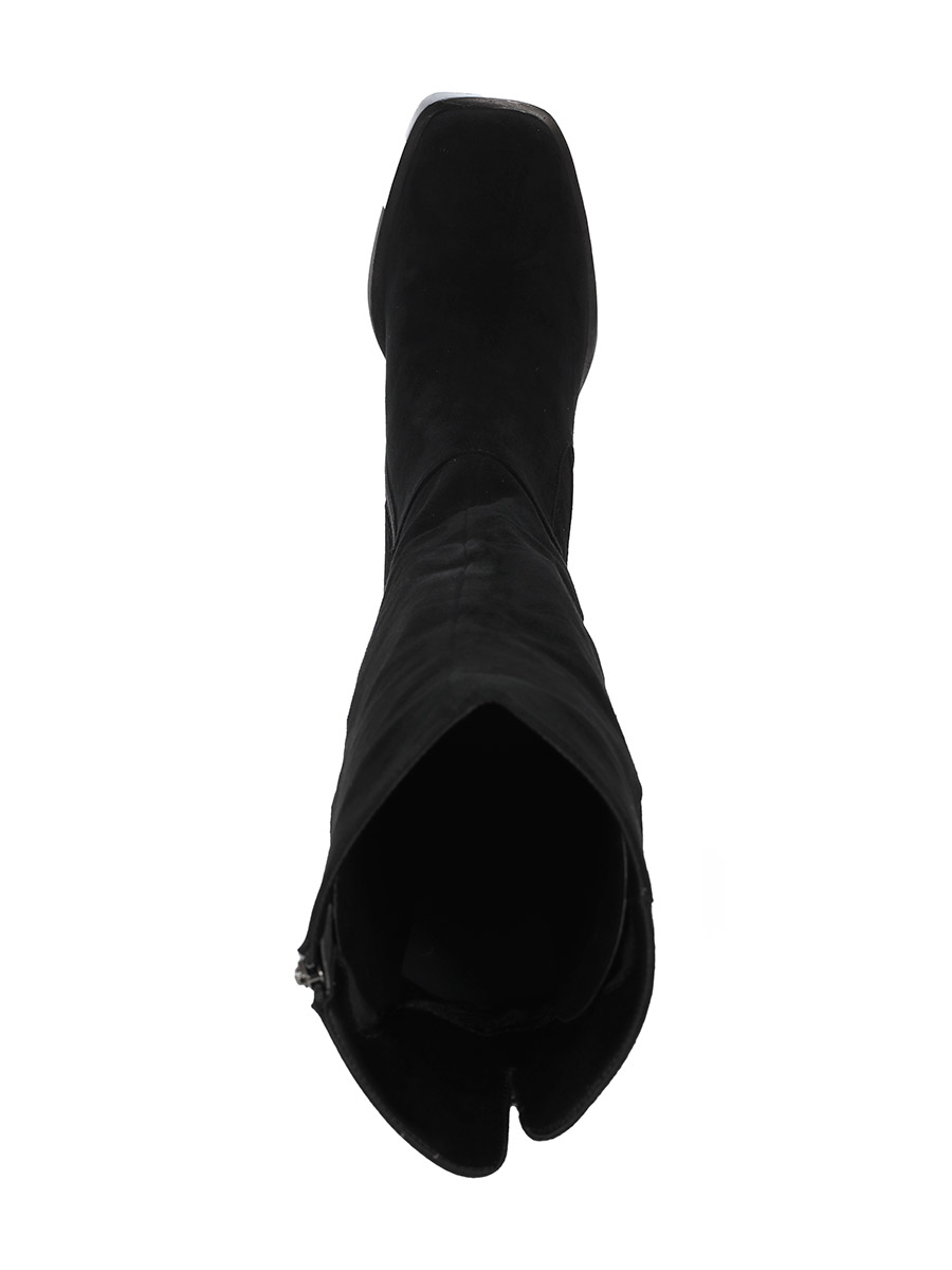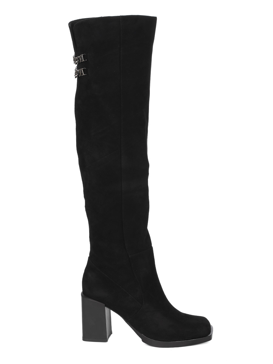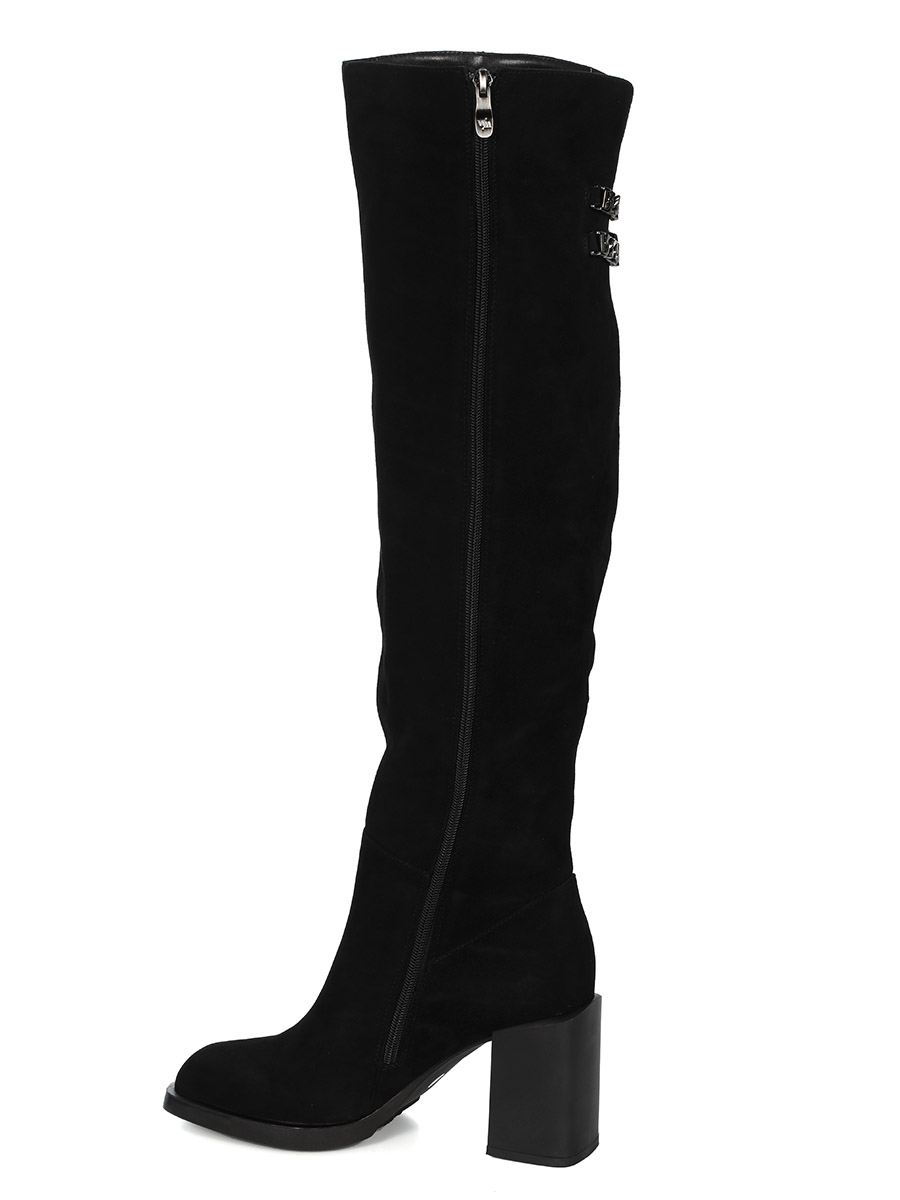 Эти стильные и удобные женские черные сапоги изготовлены из велюра. Внутри они утеплены мягкой еврошерстью, которая обеспечивает тепло и комфорт в холодное время года.