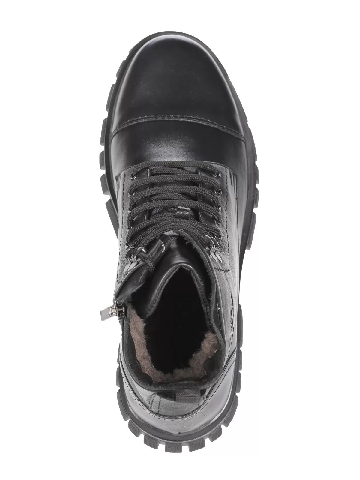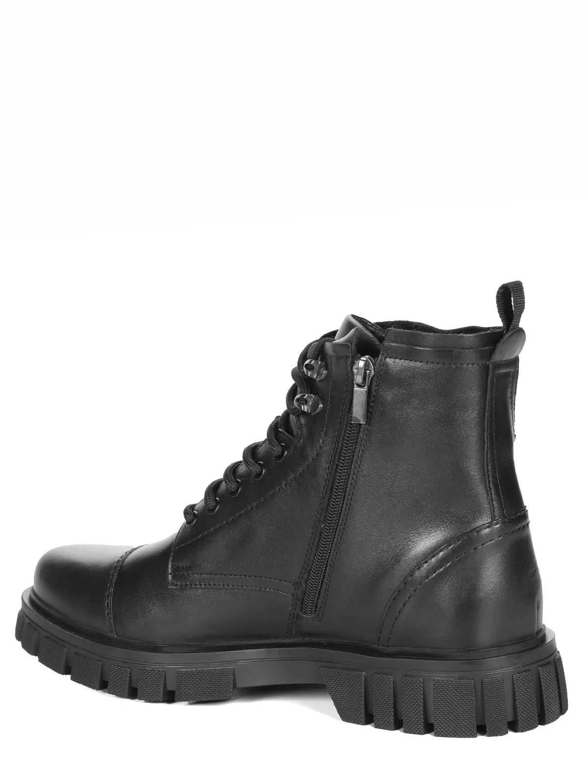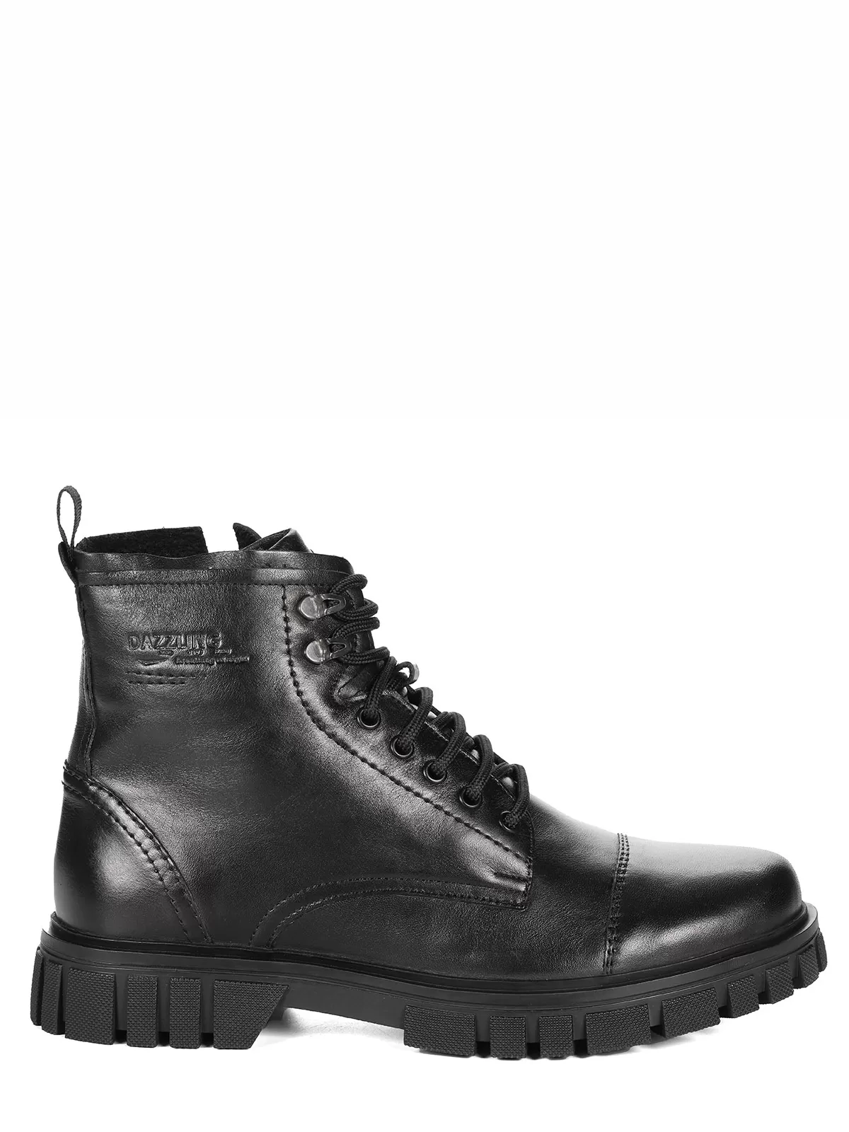 Мужские черные ботинки выполнены из натуральной кожи. Внутри - тёплая подкладка из натуральной шерсти для защиты от холода. На подошве есть глубокий протектор для надёжного сцепления с любой поверхностью и предотвращения скольжения.
