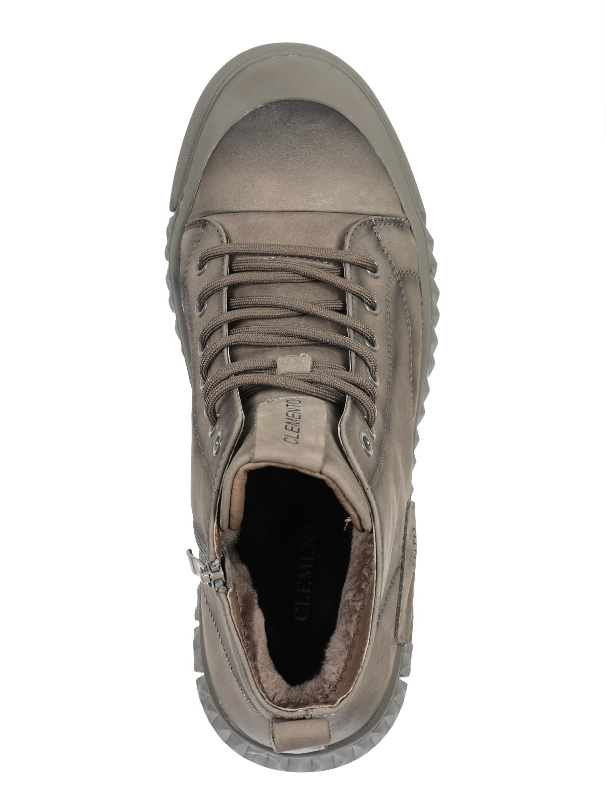 Мужские серые ботинки выполнены из нубука. Внутри - тёплая подкладка из натуральной шерсти для защиты от холода. На подошве есть глубокий протектор для надёжного сцепления с любой поверхностью и предотвращения скольжения.