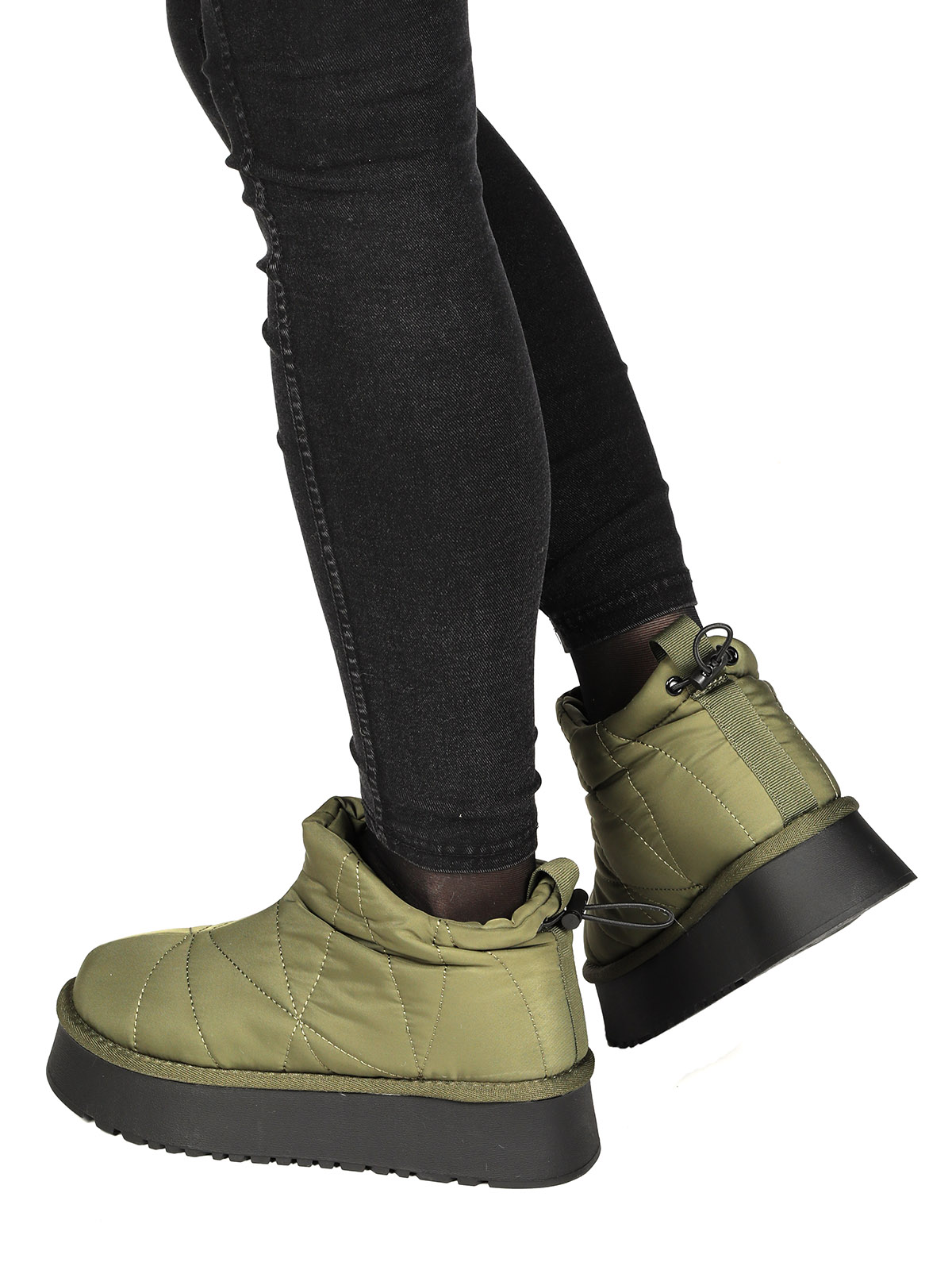 Дутики женские зеленые с внутренней подкладкой из шерсти - это идеальный выбор для холодных зимних дней. Подошва из прочного материала обеспечивает хорошее сцепление с поверхностью и устойчивость на льду. Верх дутиков выполнен из текстиля, который защитит ноги от влаги и холода. Подкладка из шерсти прекрасно сохраняет тепло и обеспечивает комфорт. В целом, это отличный выбор для повседневной носки зимой.