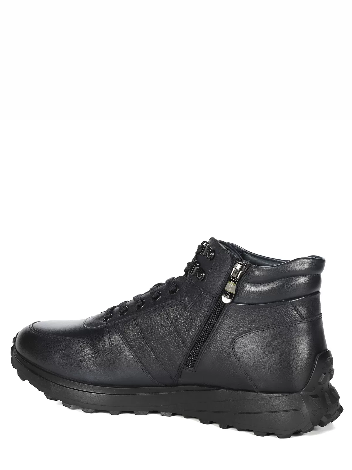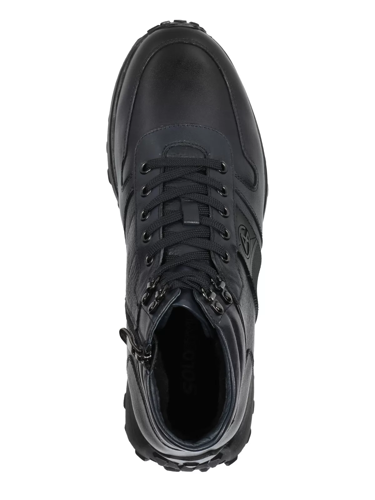 Мужские синие ботинки выполнены из натуральной кожи. Внутри - тёплая подкладка из натуральной шерсти для защиты от холода. На подошве есть глубокий протектор для надёжного сцепления с любой поверхностью и предотвращения скольжения.